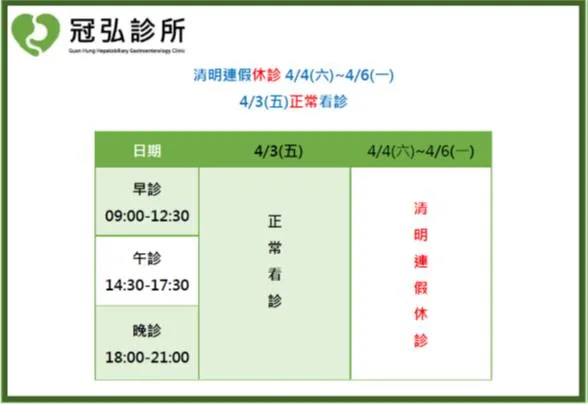 清明連假休診公告